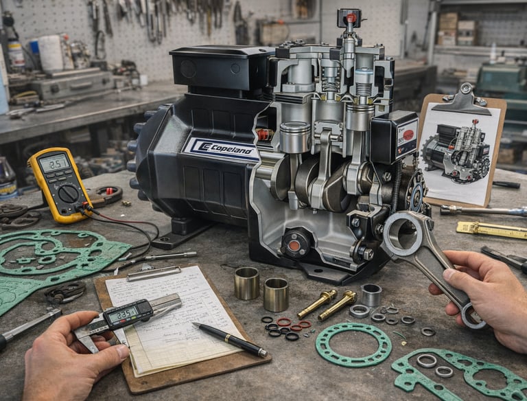 Refacciones y empaques compatibles tipo OEM para compresores semiherméticos.