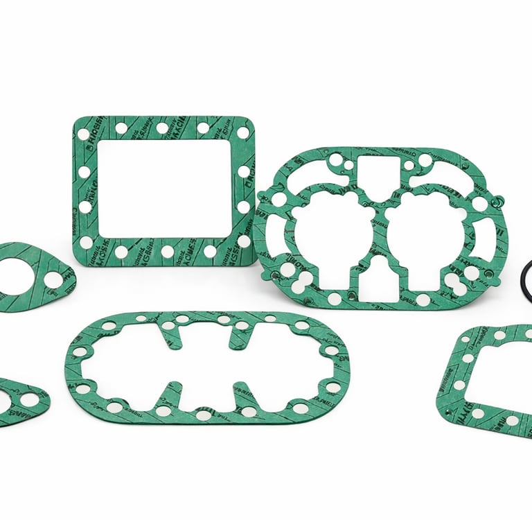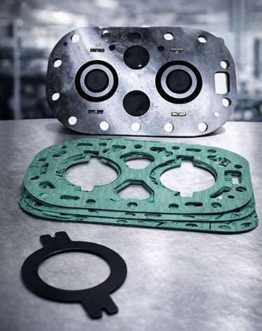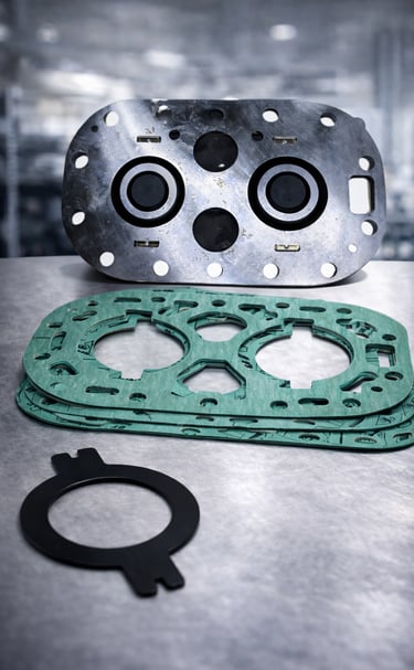 Fabricamos distintos tipos de empaques diseñados para puntos clave de sellado en compresores semiherméticos.